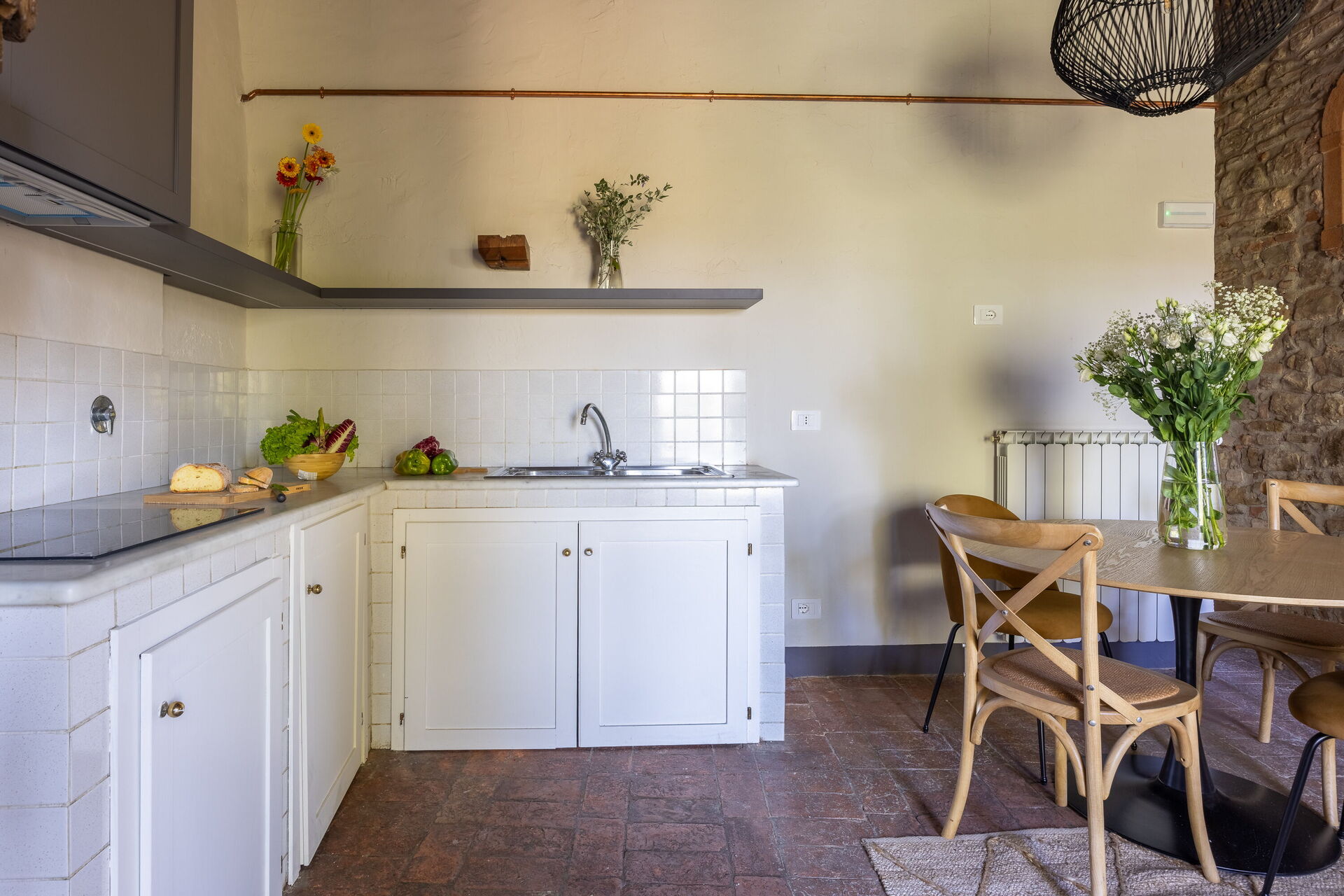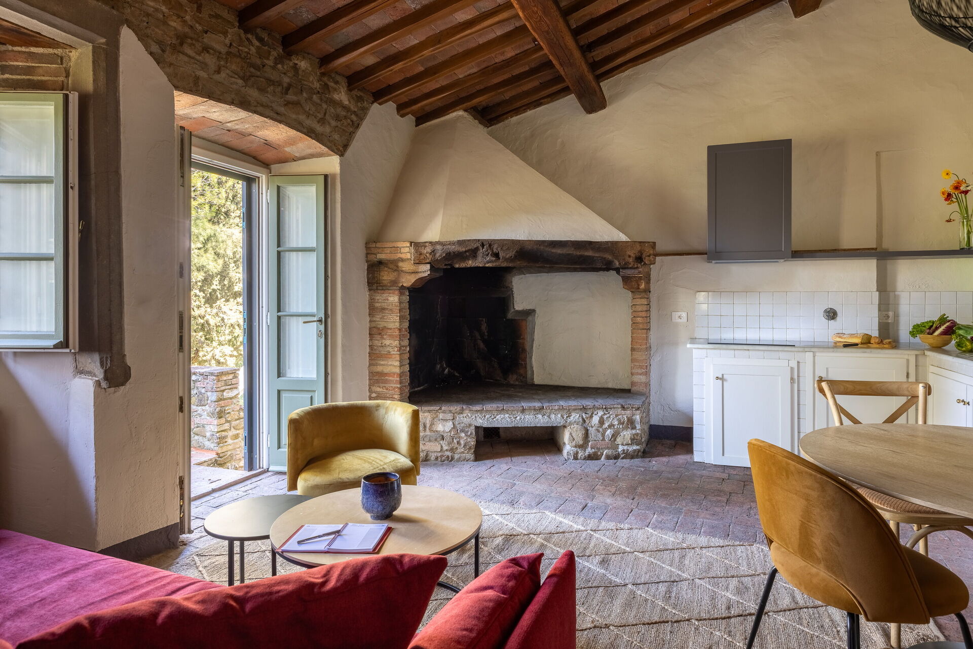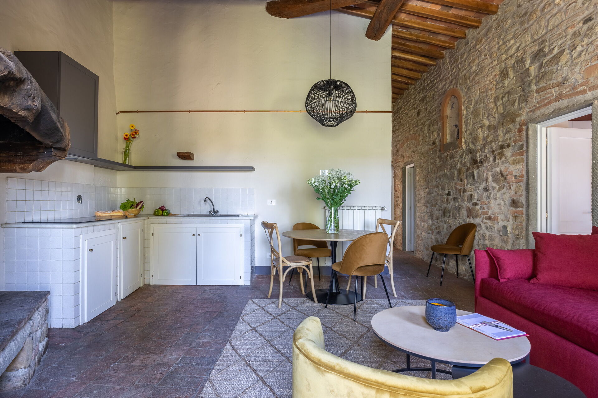 Sofa bed, Kühlschrank, Herd, Esstisch, Ausgang auf die Terrasse, TV, Italienische Kaffeemaschine