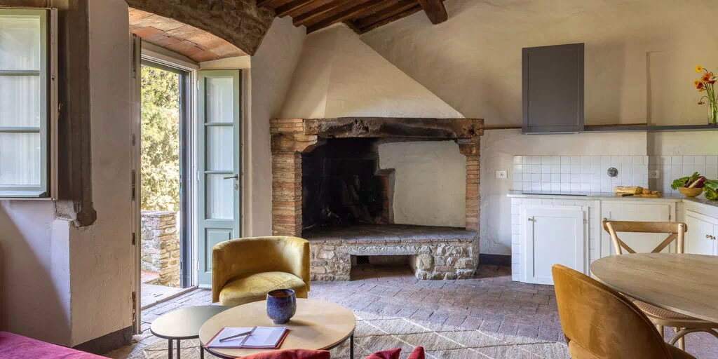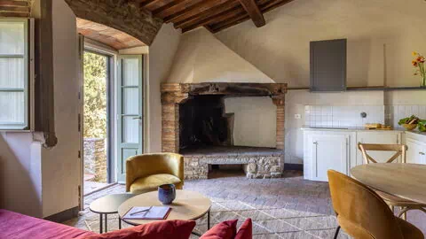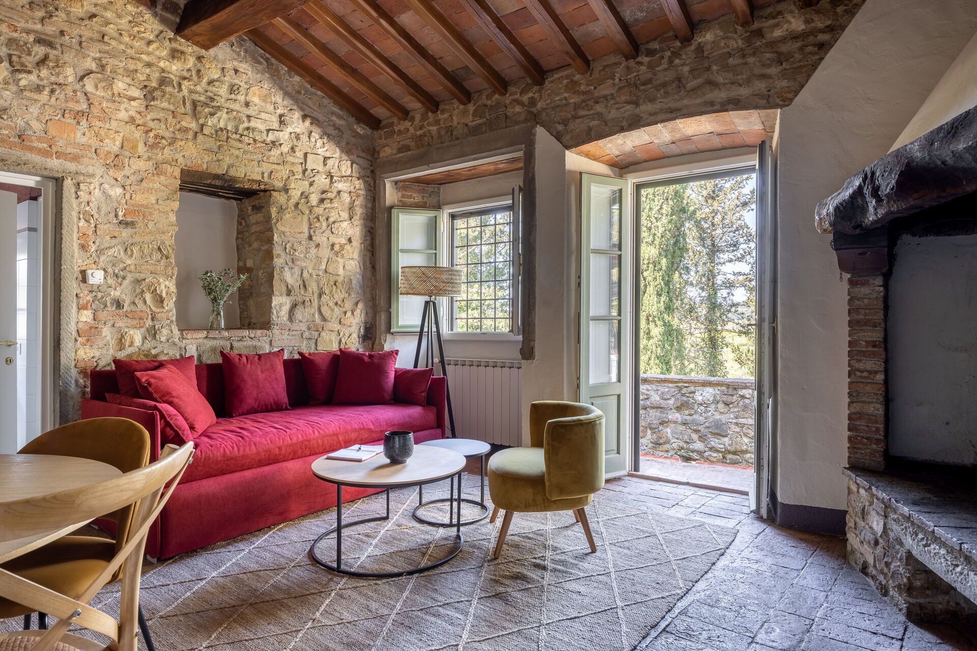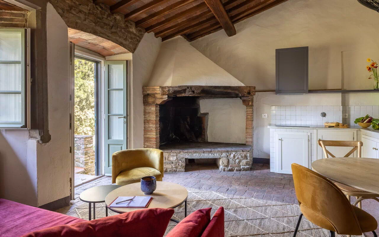 Sofa bed, Kühlschrank, Herd, Esstisch, Ausgang auf die Terrasse, TV, Italienische Kaffeemaschine