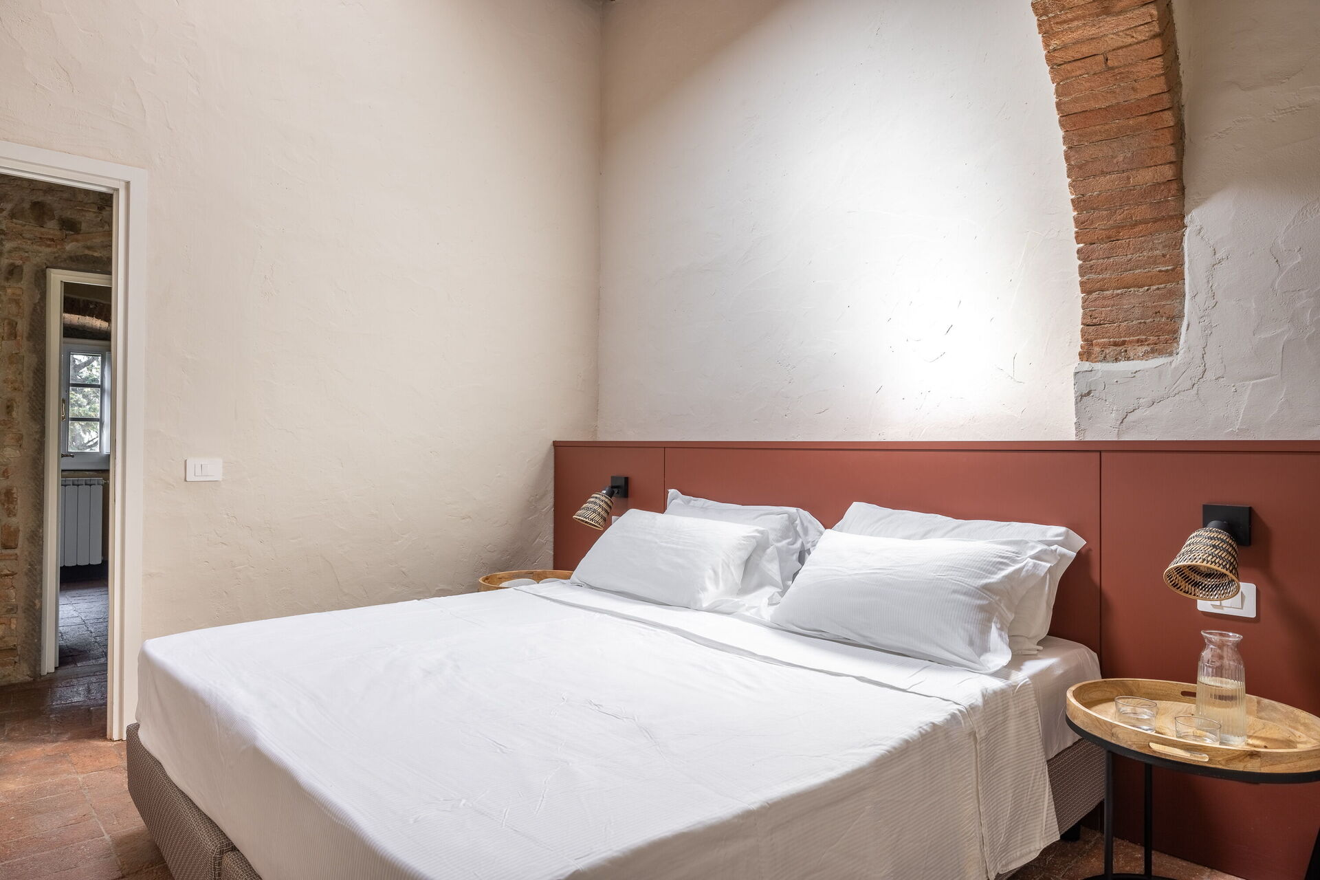 Erster Stock (15 Stufen): kleine möblierte Terrasse; Küche/Wohnzimmer mit Einzelschlafsofa, 1 Einzelzimmer, 2 Doppelzimmer, 1 Badezimmer mit Vorraum und Dusche, 1 Badezimmer mit Badewanne.
