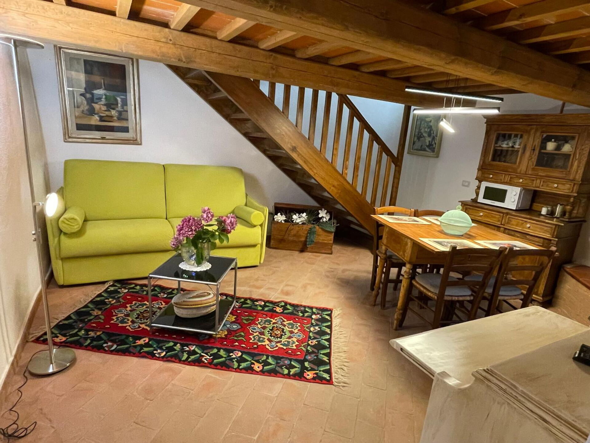 Klimaanlage, Bügeleisen, Ofen, Kühlschrank, WiFi Internet, Italienische Kaffeemaschine, Mikrowelle, Herd, Rauchmelder, Toaster, Ausgang auf den Garten, Sofa, Esstisch, CO2 Detektor, Rauchmelder