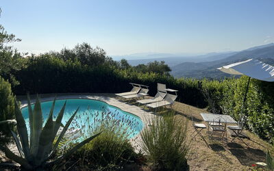 The big garden with olive trees and spectacular views over the Mediterranean Sea offers enough space for the kids to play or the adults to relax. The pool is great and the house is equipped with everything you need.