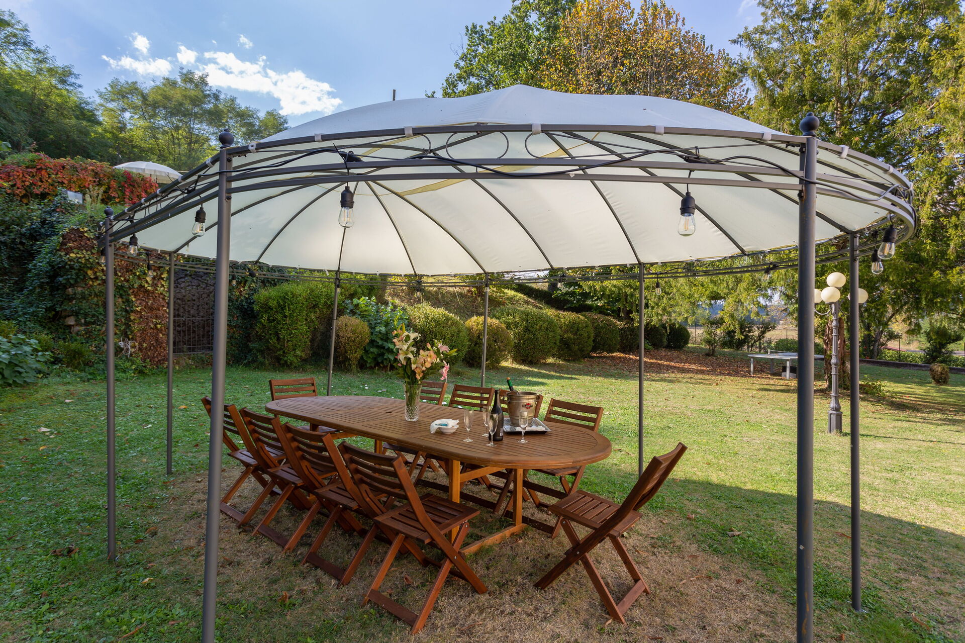 Der Eingang der Villa, zu dem man über eine reizvolle Treppe gelangt, überblickt einen großen Park von 5.000 Quadratmetern mit einem schönen Swimmingpool (16m x 8m, Tiefe 150cm), der ausschließlich den Gästen zur Verfügung steht. Die Villa bietet bequem Platz für 20 Personen und verfügt über eine große Loggia, von der aus man einen herrlichen Blick auf die umliegende Landschaft genießen kann. Zeremonien und Erfrischungen können in der Villa und im Park organisiert werden. Das Anwesen verfügt auch über einen Außenbereich, der für Mittag- und Abendessen im Freien mit Grill ausgestattet ist. Kostenloser Wi-Fi-Internetzugang. Privatparkplatz auf dem Grundstück. Eine alte Eisenbahnlinie führt in der Nähe vorbei.