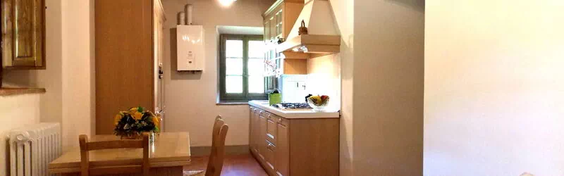 Si trova al piano terra ed è composto da soggiorno/pranzo/cucina con un divano letto singolo, 1 camera doppia con letto matrimoniale e bagno in camera con doccia (wc/bidet), 1 camera doppia con 2 letti singoli, 1 bagno con doccia (wc/bidet). L’appartamento all'esterno dispone di un forno a legna.