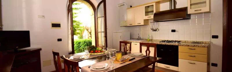 Il Fiordaliso è un appartamento completamente a piano terra con la zona giorno composta da un soggiorno con angolo cottura attrezzato. La zona notte è formata da una camera con letto matrimoniale, una cameretta con letto singolo e un bagno con doccia. All'esterno un piccolo giardino attrezzato con un tavolo e sedie. A disposizione del cliente le stesse forniture degli altri appartamenti. Il cliente troverà in loco il kit di prodotti per il bagno (sapone mani, doccia e intimo, carta igienica) e uno per la cucina (2 tabs lavastoviglie, sapone piatti, spugna, Sacchi spazzatura).