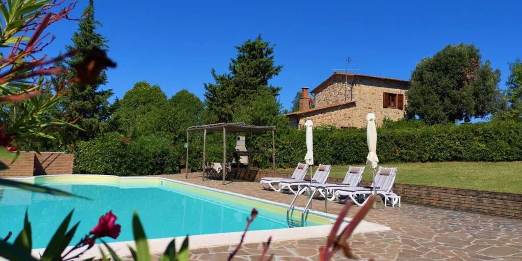 Situata su un colle, questa graziosa casa offre all'ospite un’ampia vista sulle verdi e boschive colline circostanti. Se pur di recente costruzione mantiene intatto lo stile rustico toscano. La casa è arredata con semplicità, ma dotata di tutti i comfort per godere una vacanza con tutte le comodità a stretto contatto con la natura. Circonda la casa un bel giardino curato attrezzato per pranzi e cene all'aperto e con una piscina ad uso esclusivo degli ospiti (12,00 m. x 6,00 m. prof. 1,50m. accesso con scala romana). Si evidenzia che pur se gli animali sono ammessi, la proprietà non è recintata e ci sono dei cani da pastore che lavorano nei dintorni.