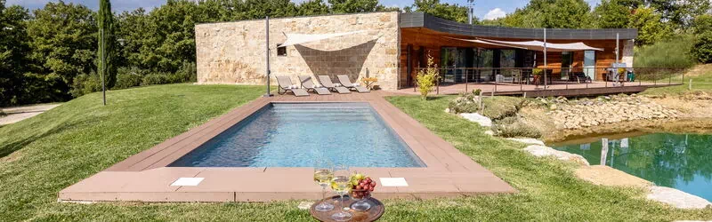 La piscina è situata ad un lato della villa, è di forma rettangolare 7x3 con depurazione a sale con la tecnologia del nuoto controcorrente con una profondità di 1,30 metri e con l’accesso attraverso una scala romana. E’ immersa in un grazioso prato perfettamente curato, punteggiata da alberi ad alto fusto e ginestre da cui si gode una splendida vista sulle colline metallifere e della Val d’Elsa. Il solarium attorno ad essa, è ben attrezzato con lettini e con doccia con acqua calda. La piscina, riscaldabile, è disponibile dall’ultimo sabato di aprile al primo sabato di ottobre, ed è dotata di illuminazione interna.