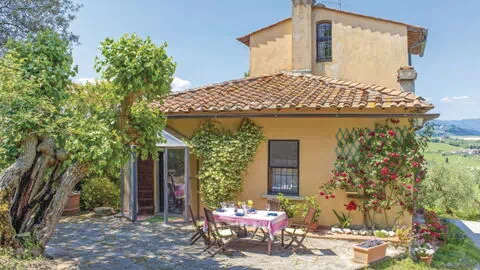 Porzione di casa colonica in un piccolissimo gruppo di case, restaurata con gusto, sulle colline che dominano la valle dell’Arno, a pochi chilometri da Firenze. Tutto intorno troviamo oliveti, vigneti e boschi di querce sopra i quali svettano i cipressi; vista panoramica sulla valle. La proprietà è dotata di un giardino di 800mq. attrezzato con piscina ad uso esclusivo degli ospiti (8m. x 4m. prof. 120/180cm.) e provvisto di spazio attrezzato per pranzi e cene all’aperto con barbecue e forno a legna. Internet Wi-Fi gratuito. Parcheggio privato nella proprietà. Accesso con 800m. circa di strada sterrata di cui gli ultimi 50m. sono da percorrere con cautela. La casa si trova a 6km. da “Pontassieve”, a 16km. da Firenze, a 24km. da “Vicchio” (paese natale di Giotto e del Beato Angelico) a 45km. dal “Barberino Designer Outlet” (oltre 100 negozi di grandi marchi della moda italiana e internazionale).