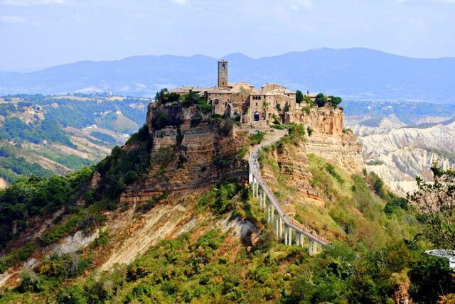 3. visita alla famosa città morente di Civita di Bagnoregio. A coloro che si avvicinano al borgo medievale per la prima volta si presenta un paesaggio irreale, creato dal progressivo sprofondamento del terreno e dall'erosione dello sperone di tufo, sul quale resiste, arroccato e isolato, un pugno di case, raggiungibile ormai soltanto a piedi attraverso un ardito ponte in cemento lungo circa 300 mt. (inclusa nella quota di partecipazione)