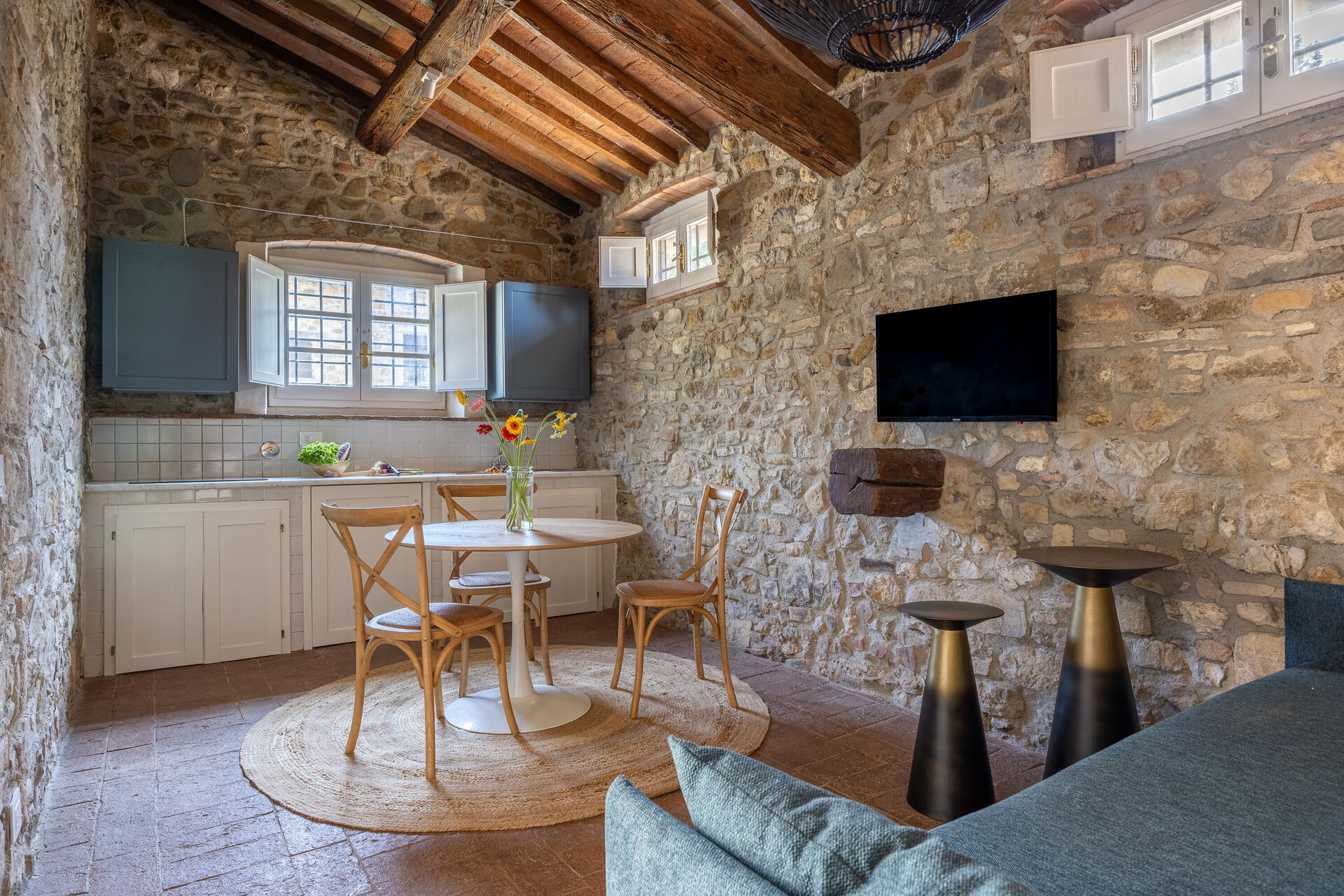 Sofa, Fridge, Stove Top, Television, Dining Table, Exit to the garden, Italian Coffee Machine, WiFi Internet