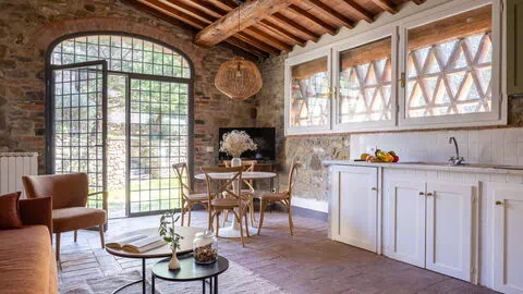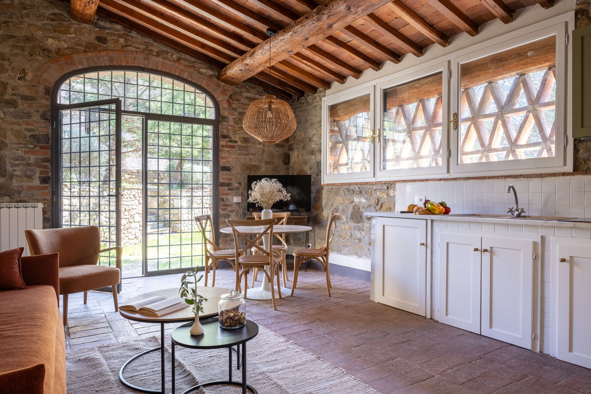Sofa, Fridge, Stove Top, Television, Dining Table, Exit to the garden, Italian Coffee Machine, WiFi Internet