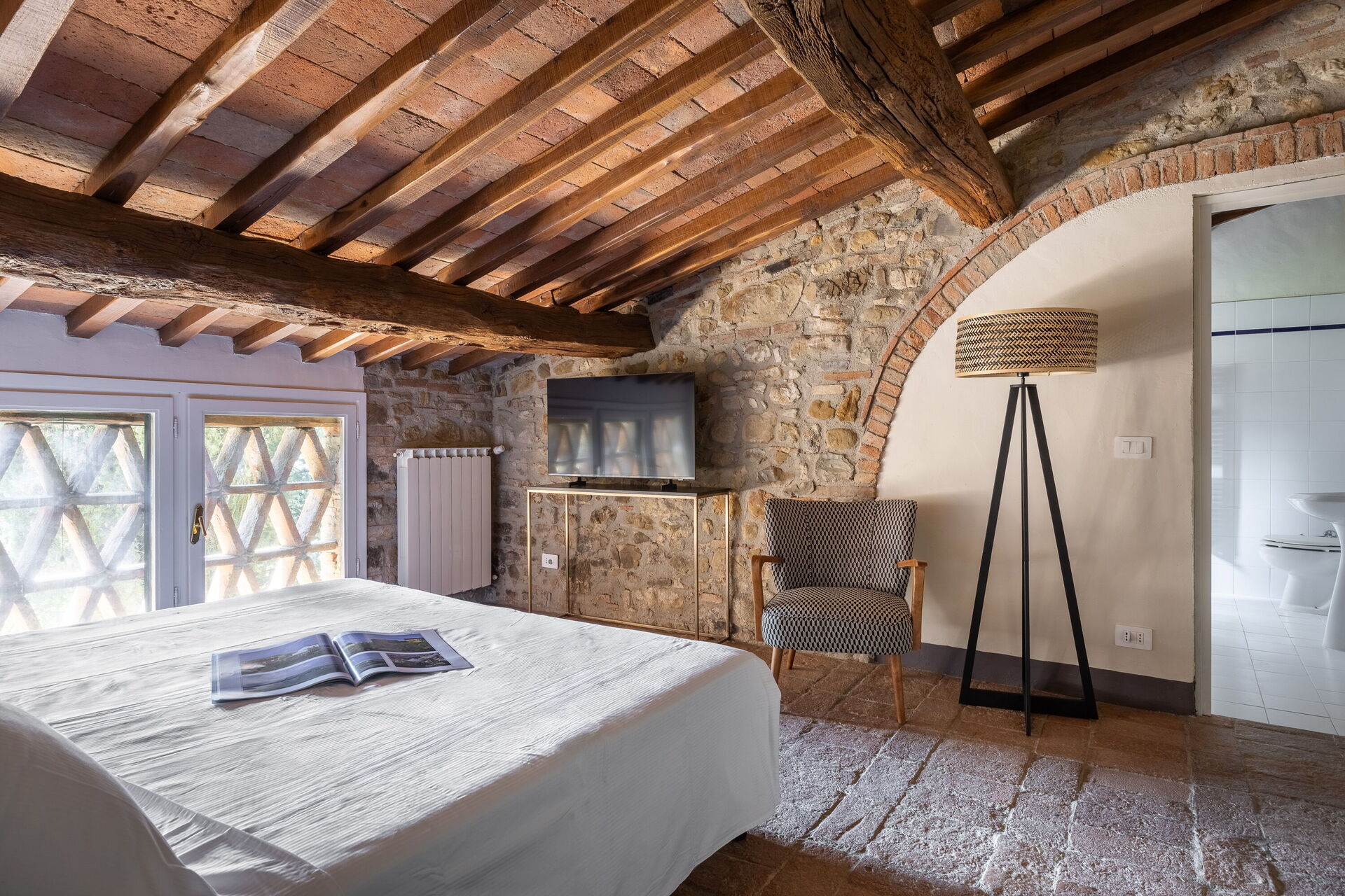 Ground floor: kitchen/living room with TV (kitchen with small fridge and induction hob), bathroom with shower, double bedroom, after 6 steps you access the double bedroom with en suite bathroom with bathtub.