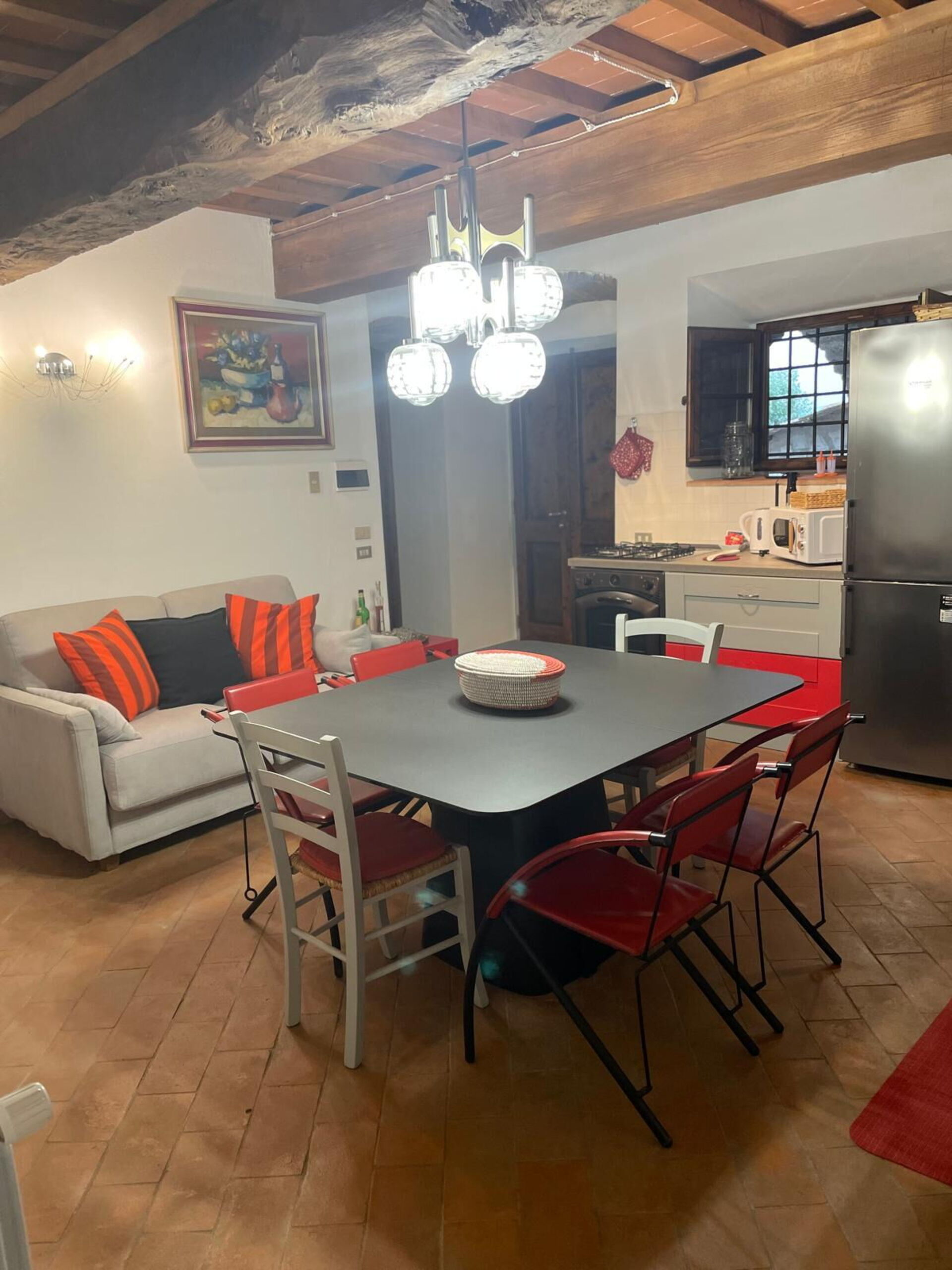 Air Conditioning, Sofa, Iron, Oven, Fridge, WiFi Internet, Dishwasher, Italian Coffee Machine, Microwave, Stove Top, Smoke Detector, Toaster, Exit to the garden, Exit to the veranda, Dining Table, CO2 Detector