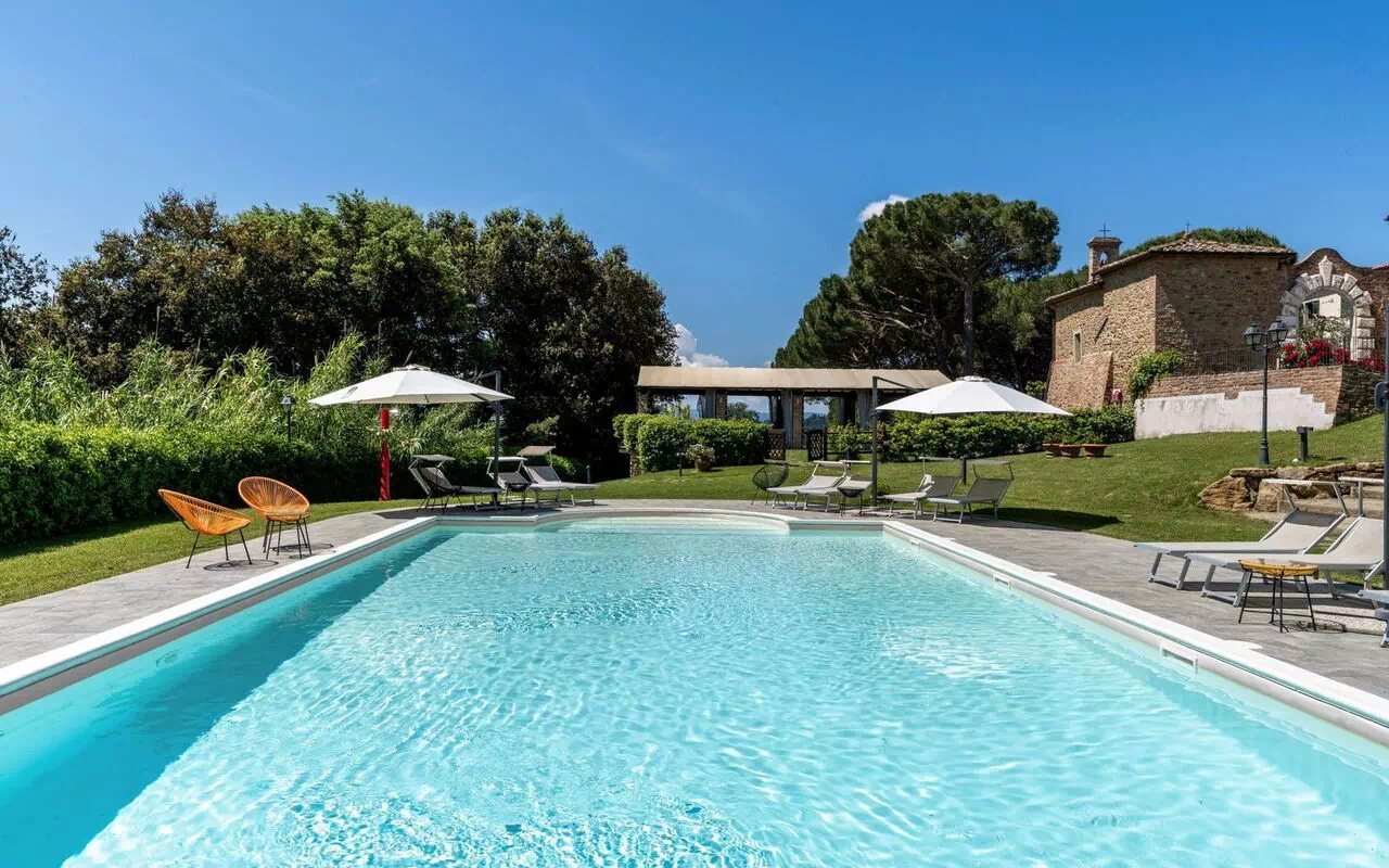 In the heart of the Tuscan countryside, just a few minutes from the village of Peccioli and Volterra. Perfect for families, groups of friends, and special events, the villa offers a relaxing stay surrounded by 65 hectares of greenery.